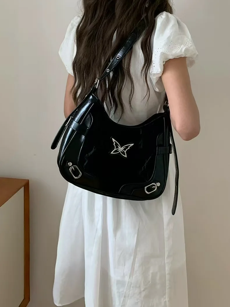 The 2025 new American-style butterfly color-blocking rivet motorcycle underarm bag is a fashionable, original and high-end single-shoulder crossbody bag